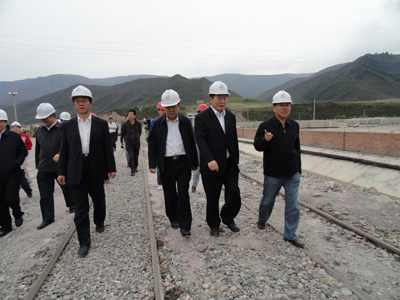 (辦公室)6月12日下午,省委常委、西寧市委書記毛小兵,西寧市委副書記、市長王予波及西寧市委副書記蘇榮,西寧市委常委、大通縣委書記閆樹江,西寧市委常委、秘書長張永海,副市長金九辰等一行,前往引大濟湟調(diào)水總干渠工地進行檢查調(diào)研。一同參加調(diào)研的還有省水利廳廳長曹宏等。青海水電集團董事長、黨委書記唐增科在現(xiàn)場就項目相關(guān)情況做了簡要匯報。