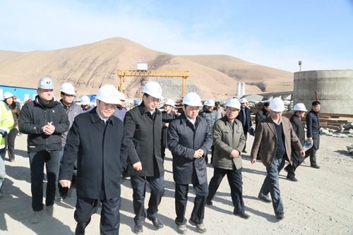 128,省長郝鵬專程來到引大濟湟工程施工現場,實地了解工程進展情況,看望慰問嚴冬季節仍然堅守工程一線的職工。郝鵬強調,要堅定信心不動搖、咬住目標不動搖、全力攻堅不動搖,保進度、保質量、保安全,盡快讓全省人民翹首以盼的重大水利工程發揮效益。