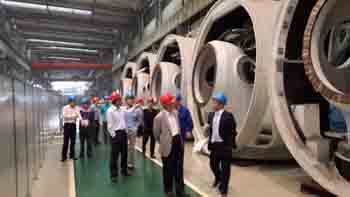518,唐增科、王海青一行前往東方電氣杭州新能源公司制造基地,對茫崖項目風機設備制造情況進行現場調研,并與該公司領導進行交流。唐增科同志強調,茫崖風電場地處高海拔、強風沙、高粉塵地區,對發電機的防砂、防塵能力要求高,希望該公司發揮技術優勢,有對風機進行針對性地優化和改進,確保質量,縮短生產周期,保證設備運行效率,為盡早實現茫崖風電場建成投運目標助一臂之力。520,唐增科董事長、王海青總經理一行又前往參觀SNEC(2014)第八屆上海國際太陽能光伏展,并與韓華新能源、陽光電源等多家參展企業進行了業務和技術交流,充分了解光伏行業發展成果和市場形勢。