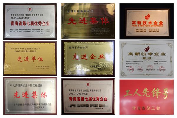 公司曾連續(xù)8年被評(píng)為“青海省上繳稅收先進(jìn)企業(yè)”,2004年開始進(jìn)入青海企業(yè)50強(qiáng)行列,連續(xù)兩屆被評(píng)為“青海省優(yōu)秀企業(yè)”、“全國(guó)優(yōu)秀水利企業(yè)”,11年被評(píng)定為優(yōu)秀省屬國(guó)有企業(yè),并先后被評(píng)為“全省和諧勞動(dòng)關(guān)系優(yōu)秀企業(yè)”、“模范和諧勞動(dòng)關(guān)系企業(yè)”、青海省首屆“十大最具影響力誠(chéng)信單位”,及“青海省十大最佳雇主”、“青海省民族團(tuán)結(jié)進(jìn)步模范集體”、“全省最佳信貸誠(chéng)信客戶”、“全省社會(huì)治安綜合治理暨平安創(chuàng)建先進(jìn)集體”、“青海省安全生產(chǎn)先進(jìn)企業(yè)”、“全省廠務(wù)公開民主管理工作先進(jìn)單位”,多次獲得“AAA+”信用等級(jí)。特別是在2010年,公司被黨中央、國(guó)務(wù)院、中央軍委授予“全國(guó)抗震救災(zāi)英雄集體”稱號(hào),集團(tuán)黨委被中央組織部授予“全國(guó)抗震救災(zāi)先進(jìn)基層黨組織”稱號(hào)。