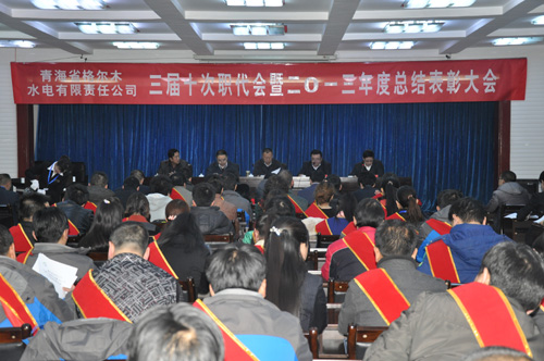 1月7日上午,青海省格爾木水電有限責任公司三屆十次職代會暨2013年度總結表彰大會隆重召開。青海水電集團總經理王海青,黨委副書記、工會主席李建民,集團公司第二考核組全體成員出席會議。格水電公司總經理于宗甲,常務副總經理李建義,副總經理支永新、閆永忠。會議由格水電公司黨委書記王新民同志主持。來自該公司各部門的代表、列席代表、優秀共產黨員、勞動模范和先進集體代表110多人參加了大會。