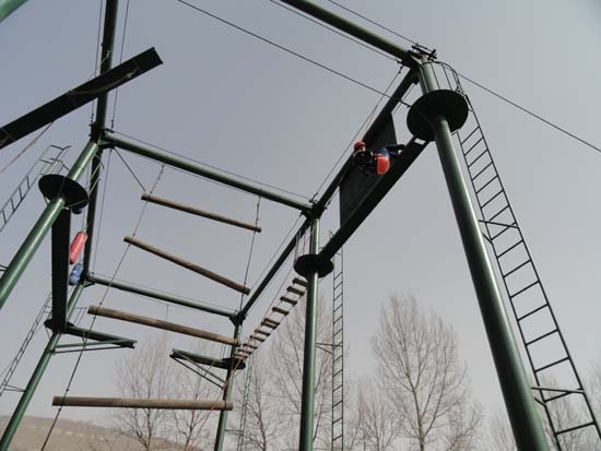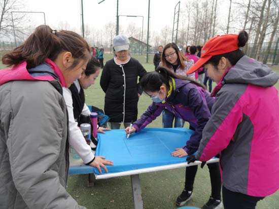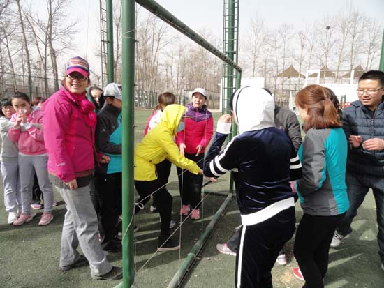 培訓當天,盡管天氣寒冷、黃沙漫天,但參訓隊員們個個精神抖擻,熱情高漲,訓練過程有條不紊進行。活動開始時,進行了破冰熱身、團隊建設活動。全體隊員分為三組,在限定時間內分別組建各自的隊名、隊歌、隊徽及口號。隨后,隊員們信心十足,高呼著團隊口號,在專業培訓師的指導下開始了充滿挑戰的拓展項目。大家相互協作,互幫互助,順利完成了 “高空斷橋”、“穿越電網”、“千里傳珠”、“盲人方陣”、“搶度金沙江”等拓展內容。特別是在閉營項目“搶度金沙江”中,大家充分展示出團隊精神和挑戰困難的勇氣,使整個培訓活動達到了高潮。通過這些拓展項目,將挑戰自我,熔煉團隊,創造激情,強調奉獻,享受快樂的理念傳達給了每一位隊員。活動現場笑聲不斷,掌聲不斷,不僅使同志們感受到戶外運動的魅力,體會到溝通、協作的重要性,更引導大家以開放的心態面對變化,積極進取,啟發想象力與創造力,進一步提高了解決問題的能力,充分展現了水電女職工積極向上,團結進取的精神面貌。