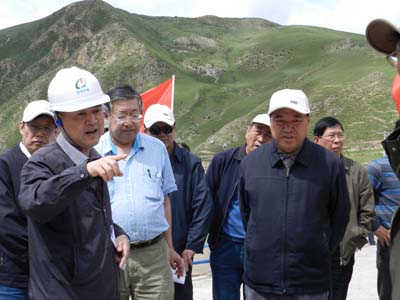 (玉電) 7月的玉樹,正值災后重建如火如荼進行之際,水利部副部長胡四一、民盟中央副主席索麗生、水利部總工程師江洪、水利部長江委主任蔡其華等一行53人組成的黃河河源區保護專題調研團,蒞臨青海水電集團玉樹禪古電站水庫調研